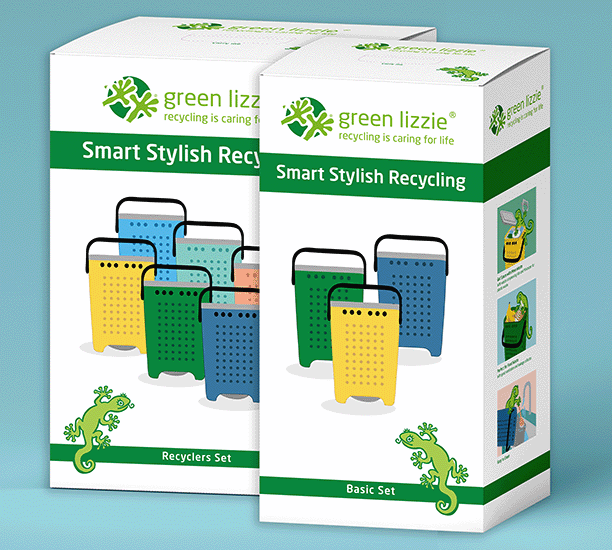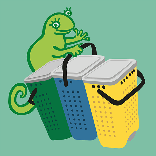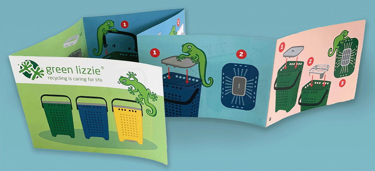 Containers for smart recycling of household waste. Illustrations, package design, assembly instructions.