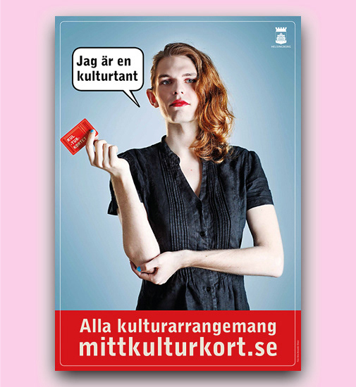 I’m a culture vulture. The Culture Card includes free admission to Fredriksdal, Sofiero, Kärnan, Dunkers and discounts at the Concert Hall, the City Theatre and more in Helsingborg. T-shirt and tote bag print. Advertising and outdoor print.